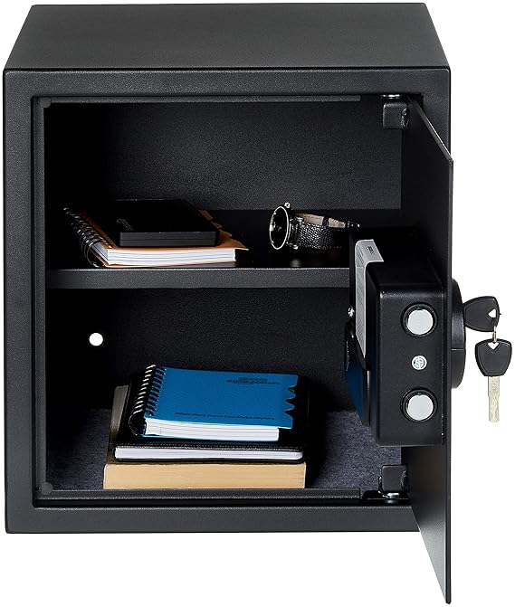 - 1.2 cubic feet home safe for storing important documents, jewelry, and other valuables. Programmable electronic keypad ensures secure, easy operation; back-up key for emergency use