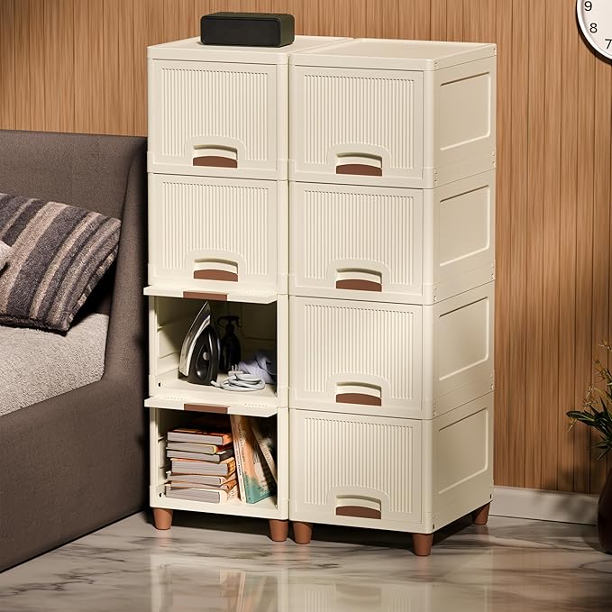 Basics Multi-Purpose Organizer | Modular Storage Box for Clothes, Kitchen, Bedroom & Living Room | Stackable Rack, Space-Saving Wardrobe Cabinet (Off White), 8 Piece